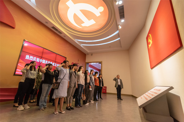 在中共黑龙江历史纪念馆参观学习,回顾百年党史,重温入党誓词,凝聚奋斗力量。誓言厅里,在学院党委书记肖庆生领誓下,全体教师党员面对鲜红的党旗,庄严地举起右手,重温入党誓词。