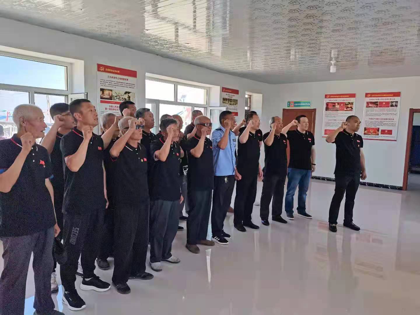 党课结束后,全体参会人员来到了新立村党建活动中心,参观“不忘初心、牢记使命”中国共产党历史展和新立村脱贫攻坚成果展,共同回顾党的百年奋斗之路和新立村脱贫攻坚工作取得的优异成绩。参观结束后,新立村全体党员面向党旗,举起右拳,重温入党誓词,坚定初心使命。